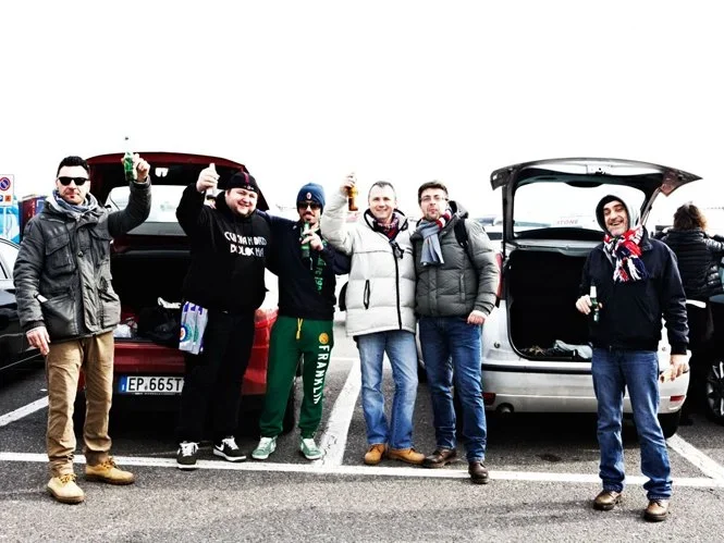 Autogrill number two came an hour later. Its enormous, sterile facade was teeming with throngs of noisy people decked out in football gear; I quickly discovered that this was a pit stop for Bolognese soccer fans fueling up on their way to the game. Tailgaters were everywhere, beers in hand. “A good Italian driver can drive perfectly after drinking beer,” boasted a wobbly man, and I hoped he was right.